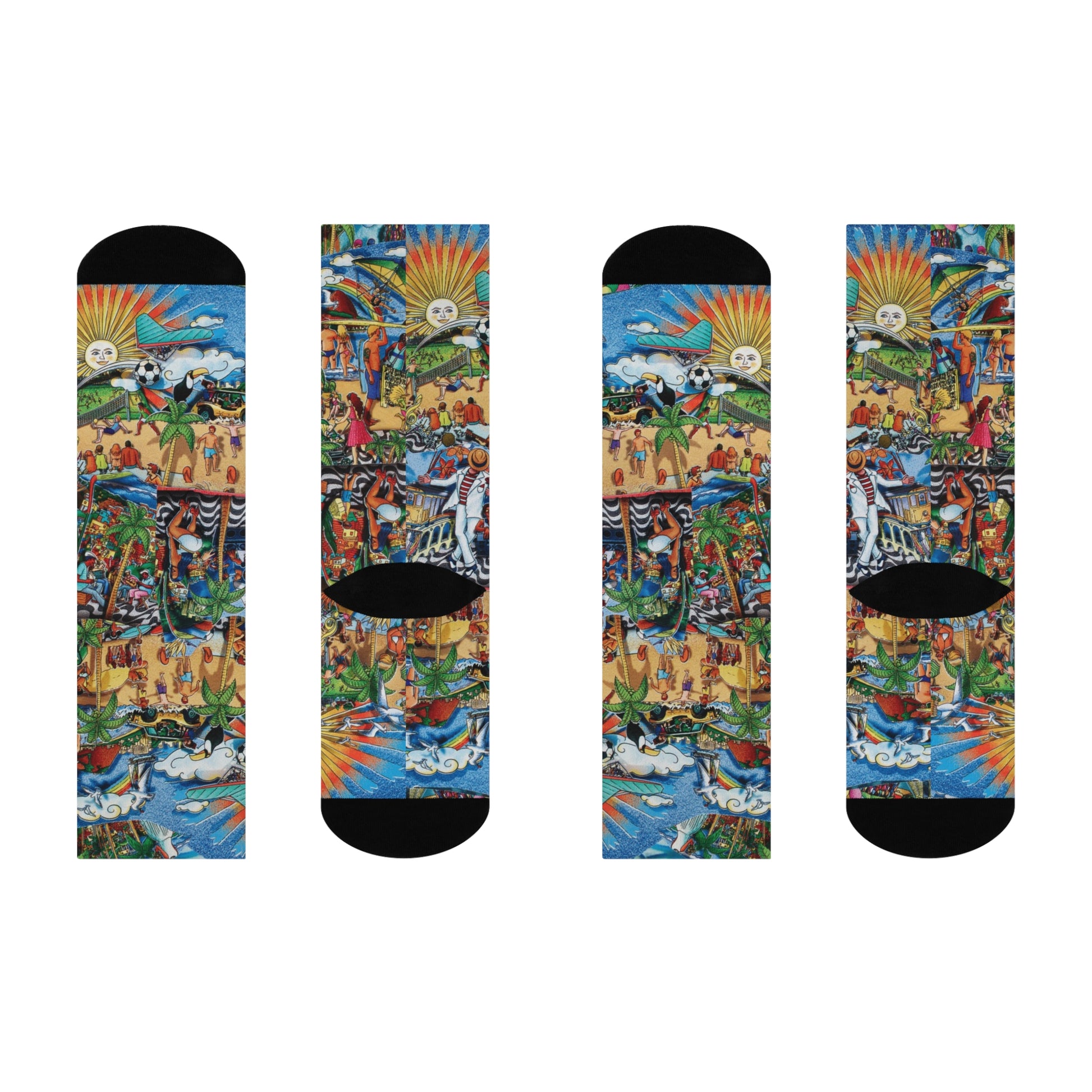 Florida Collage Artwork Crew Socks — Vibrant Abstract Art Cushion Socks