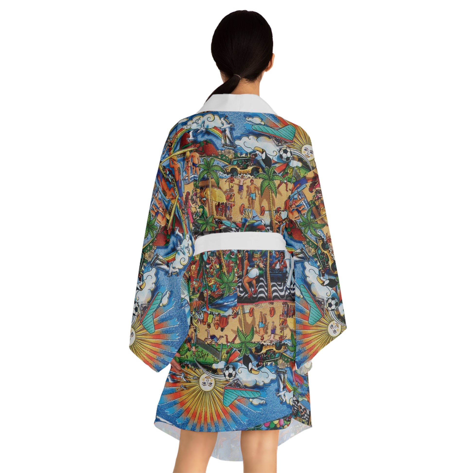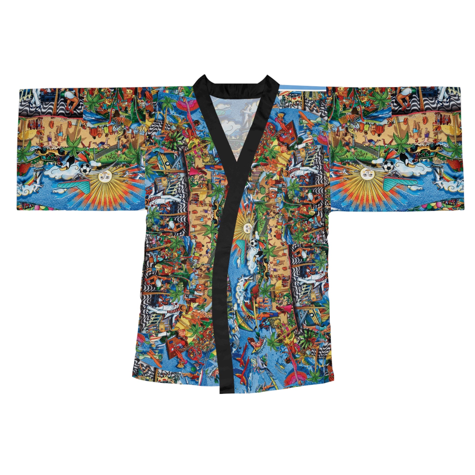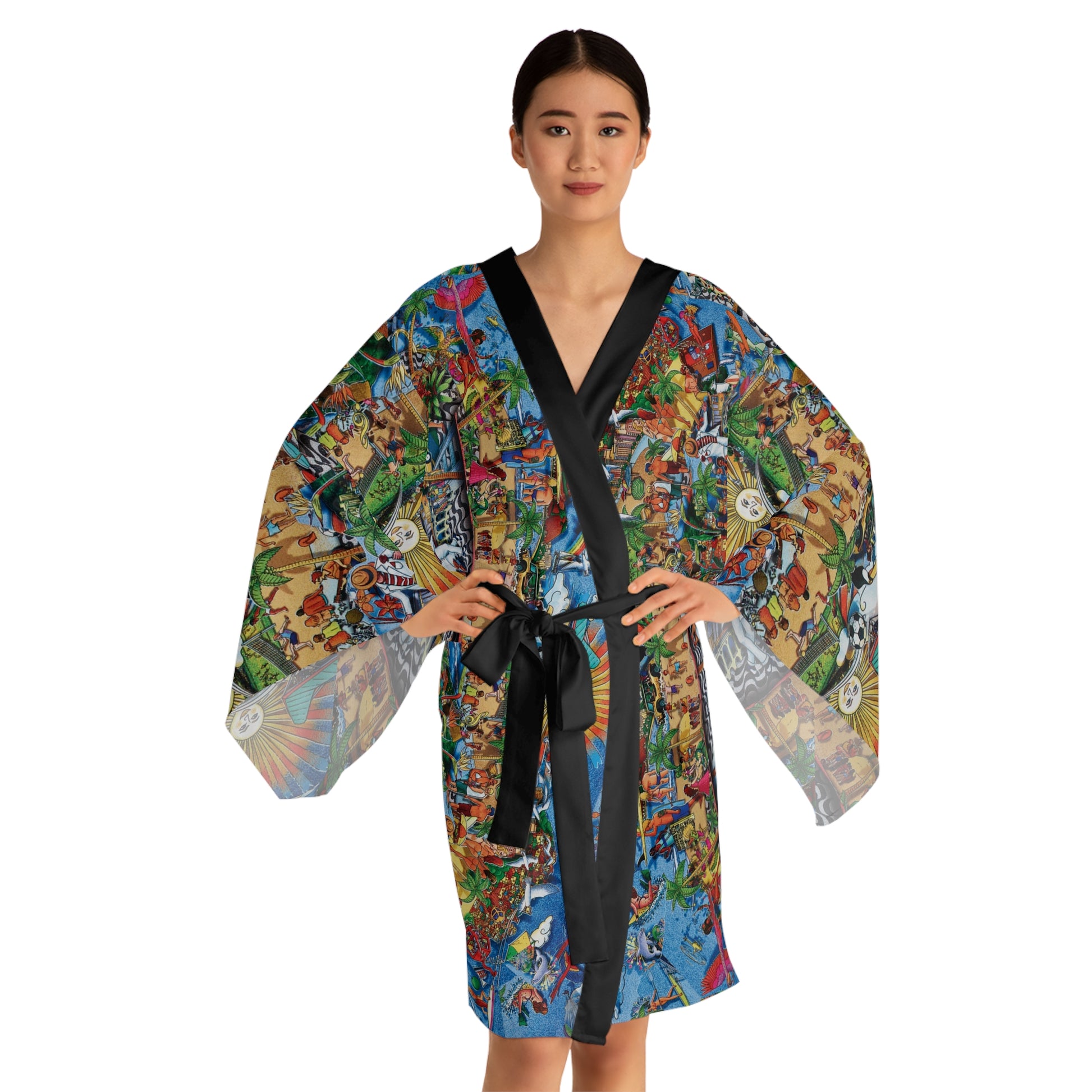 Florida Collage Artwork Floral Kimono Robe — Boho Lounge Cover-Up