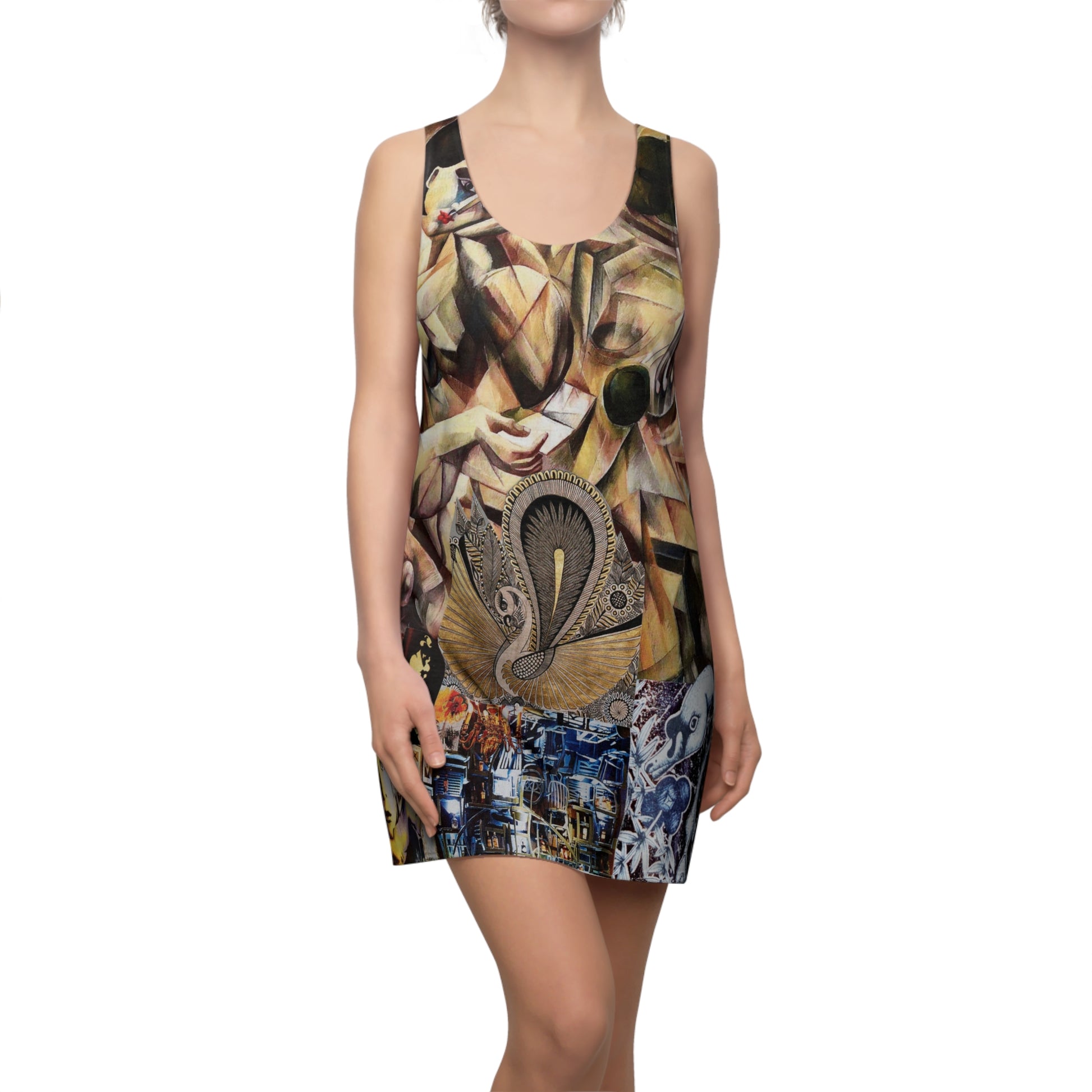 A feminine and stylish, yet really comfortable dress. This high quality AOP racerback dress is appealing from every angle. Inspired by the freedom of creativity, it will instantly become everyone's alltime favorite.